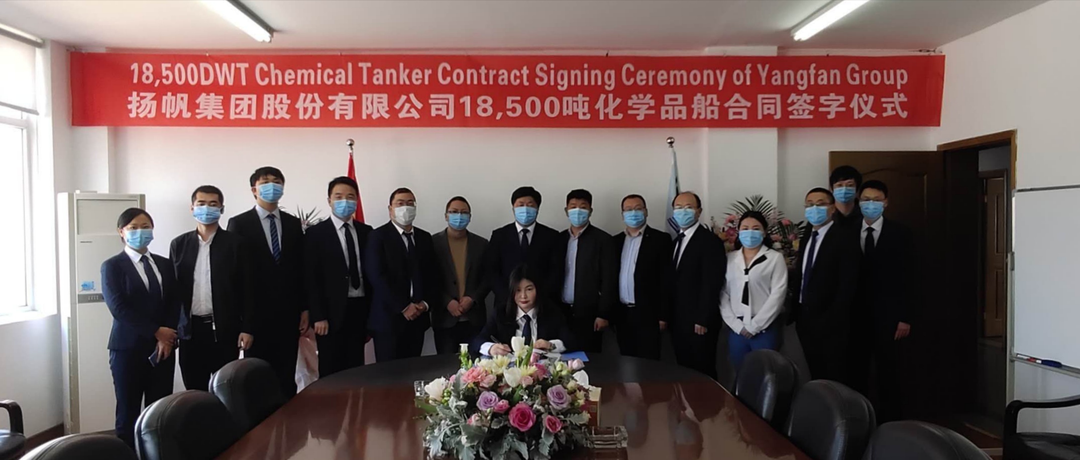 2020年4月9日,揚帆集團與一家國外船東簽署一艘18500DWT化學品船建造合同。該船型長164.34米、寬23米、設計吃水9.55米。